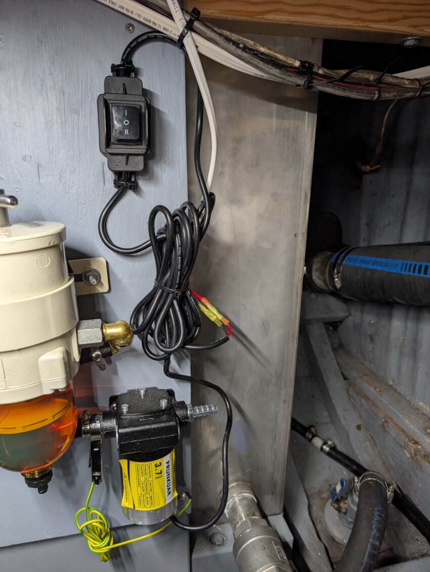 Fuel Transfer Pump I was planning on replacing the entire fuel lines; transfer pump to day-tank (because there are a number of unions) and day-tank to stove (because its copper). I changed my mind when I realized that the hose and pipe run through some hidden areas (such as under the fresh water tanks). Too…