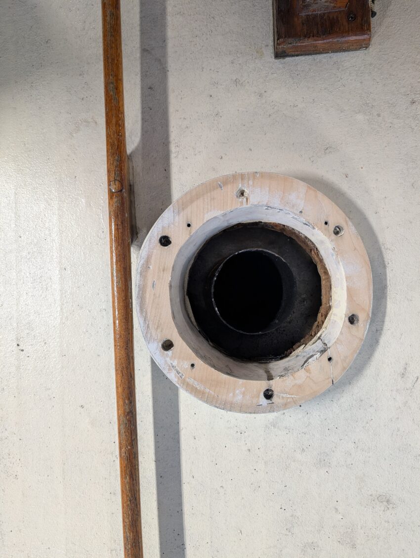Varnish Surprising little to do in terms of freshening up the varnish. I have decided to get at least 1 more coat on entire exterior so it will still take about a week counting drying time. Stove Flue A new leak developed last season and quickly became one to deal with ASAP. I believe it…